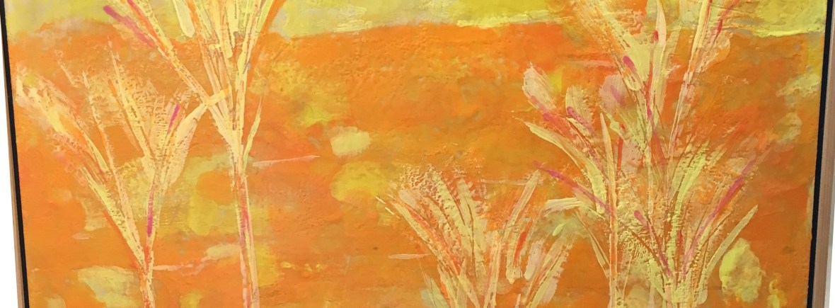 Painting for me is intuitive … giving free rein to impulsiveness and sensuality balanced between organic (nature) and geometric (man) shapes that become a dialogue. The physical process bonds me to the painting. I stand over raw canvas and stain the first layer by applying thin, diluted paint with a sea sponge. Sometimes it is poured allowing for a varying effect. Each layer evolves due to the interaction of the colors, the tool (i.e. squeegee, palette knife) used to apply the paint and any additions of thick mediums and gels in different finishes. Any prettiness will have a sense of torque to it … an element of surprise. A boldness, muscular of a sinewy kind. Each painting starts with me leading the paint, it then takes on a life of its own and begins to lead me. Back and forth like a dance. Through this process unpredictable encounters occur.